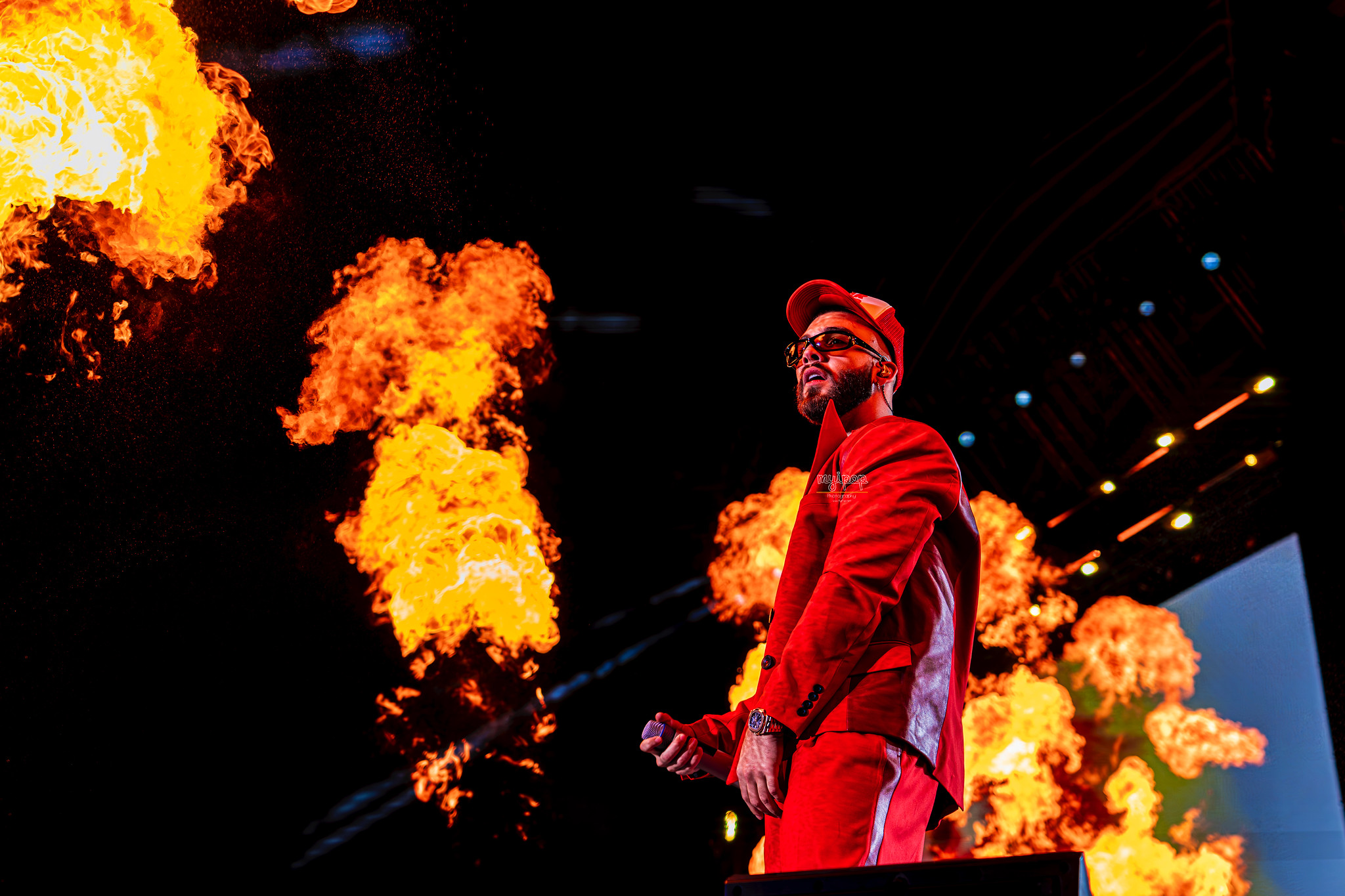De rojo y acompañado por sus bailarines, no paraba quieto en el escenario, cercano y dejando que el público disfrutase de sus éxitos. Con las miles de personas cantando cada canción, arrancaba su primera parte del show con ‘Espectacular’, ‘NO ME SUELTES’, ‘Déjame Entrar’, ‘Santa’ o ‘Problemón’. Ahí no quedaba la cosa porque, sin dejar de bailar, habría tiempo para su más que exitoso ‘Todo de ti’ que fue seguido de cerca por ‘2/Catorce’, ‘DILUVIO’ y ‘PUNTO 40’ hasta cerrar por todo lo alto con ‘BABY HELLO’.