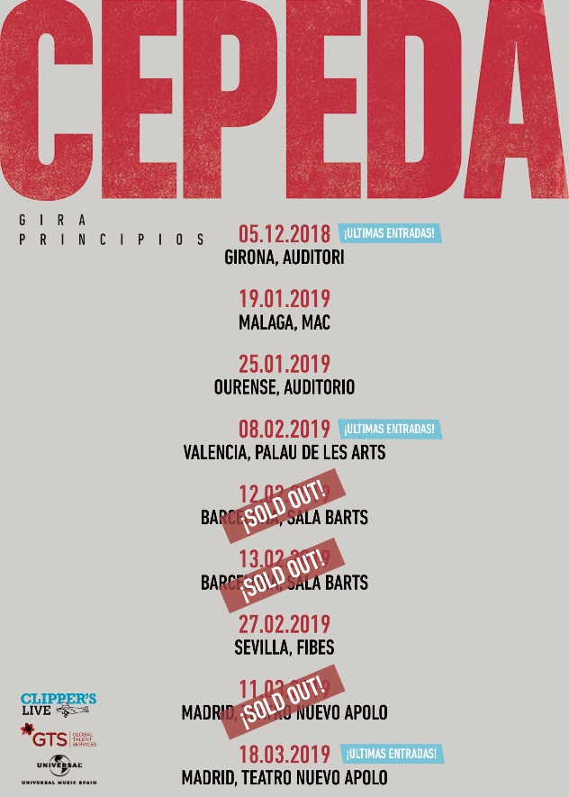 Estos son los conciertos de su primera gira en España cuyas entradas están a la venta en www.cepedaoficial.com