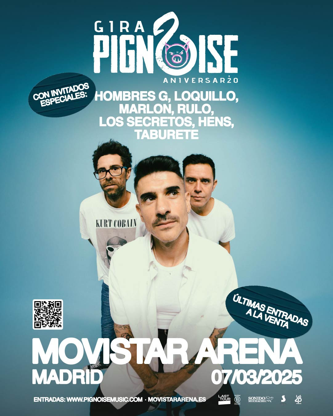 A esa noche, no faltarán Hombres G, Rulo, Marlon, Los Secretos, Hens, Taburete y Loquillo. Formarán parte de la celebración que preparan Álvaro Benito, Pablo Alonso y Héctor Polo. Un concierto con el que Pignoise entra en ese exclusivo hall of fame del rock nacional apadrinados por los nombres más grandes de nuestra historia musical. Será todo un puente entre el pasado y el futuro.